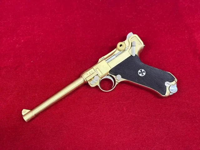 栃木県宇都宮市のお客様より、フランクリン・ミント社が1993年にリリースした、ルガーP-08の金属製モデルガンをお譲りいただきました。ありがとうございます。ベースとなっているのは1990年に新規設計で登場したマルシン製金属モデルガンです。