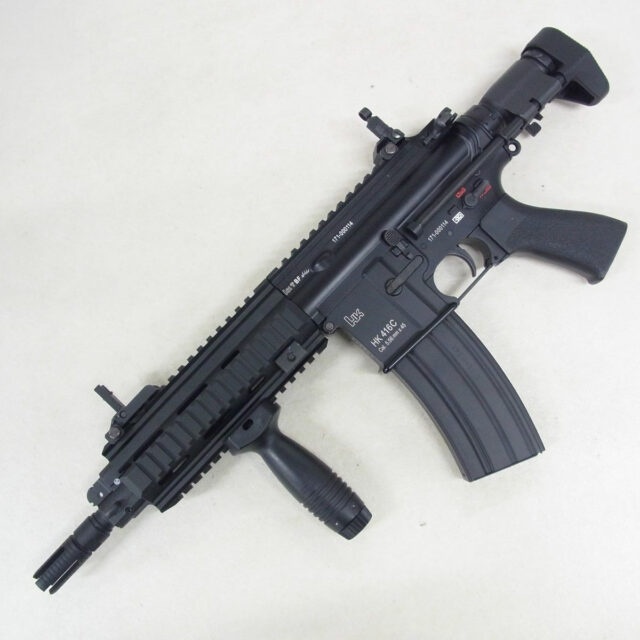 「HK416C カスタム」は、HK416シリーズ内でも特にコンパクトさを追求したショートカービンモデルです。全長571〜695mmのショート・ワイヤーストック仕様に230mmバレルを組み合わせ、CQB戦闘を想定した取り回し性能を実現しています。