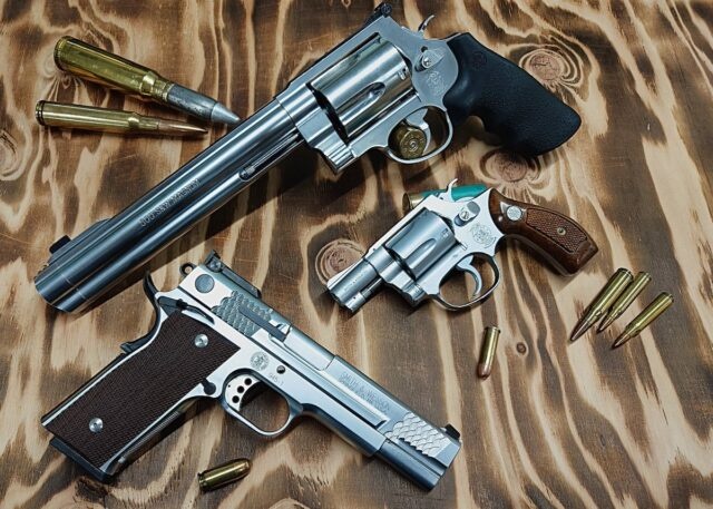 コルトパイソン、S&W M19、コルトSAA(シングルアクションアーミー)など。
