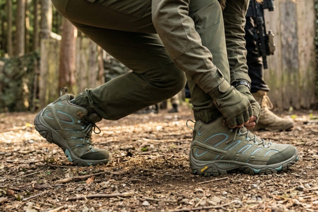 メレル・モアブなど軍やアウトドア用途でも使用されることがある製品は信頼性が高く、グリップ力と耐久性を兼ね備えています。